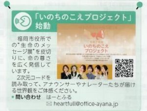 粕屋町広報誌に「いのちのこえプロジェクト」掲載