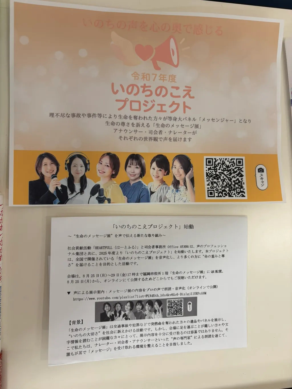 「いのちのこえプロジェクト」音声動画をYOUTUBEにて公開中 https://youtube.com/playlist?list=PLVdSth_h0s4kv6Gc6-DizlgjllURPcG8M&si=eMRJ7pnZLZ5JnfH8