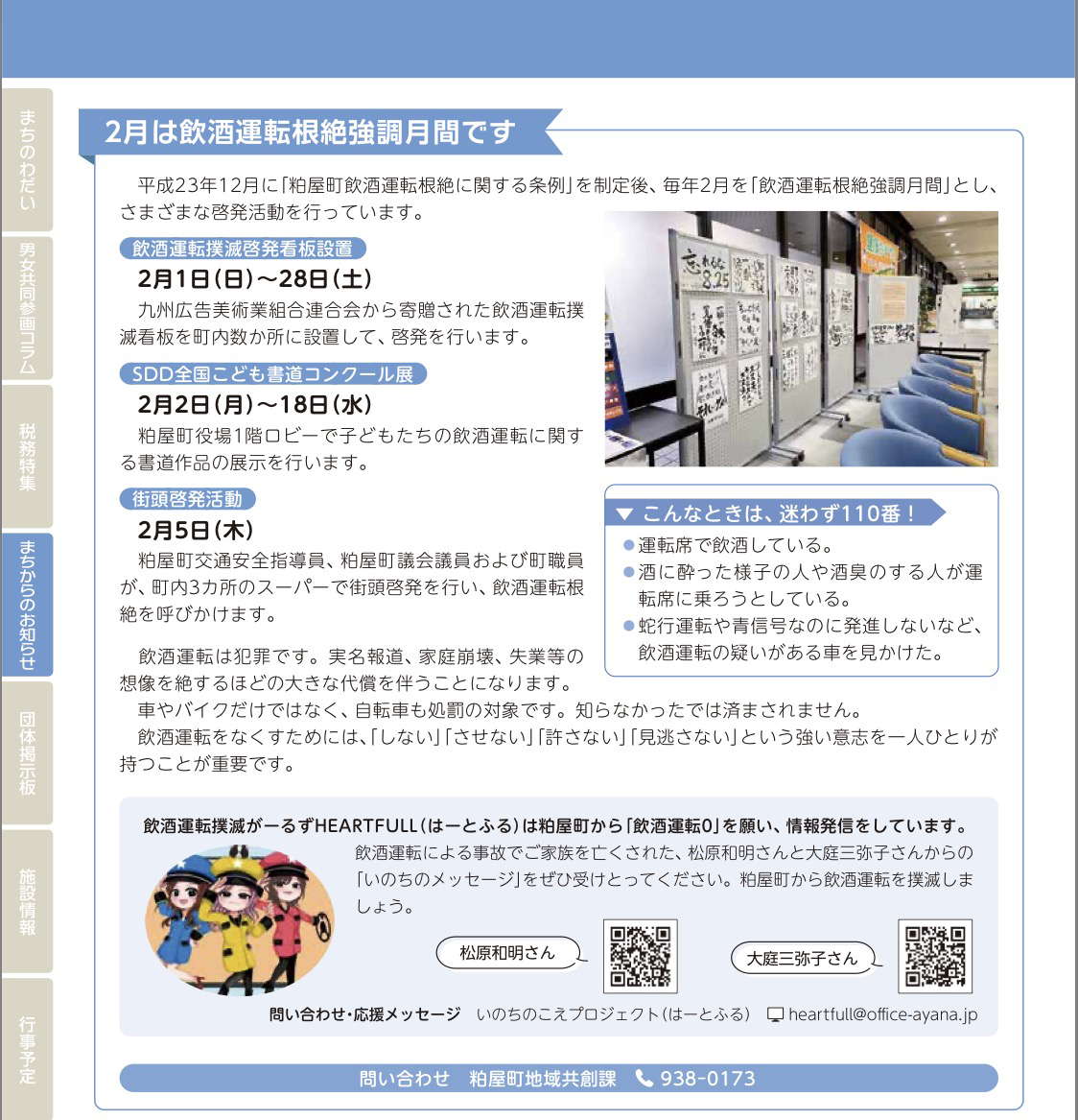 粕屋町広報誌に「粕屋町 飲酒運転撲滅月間メッセージ」、